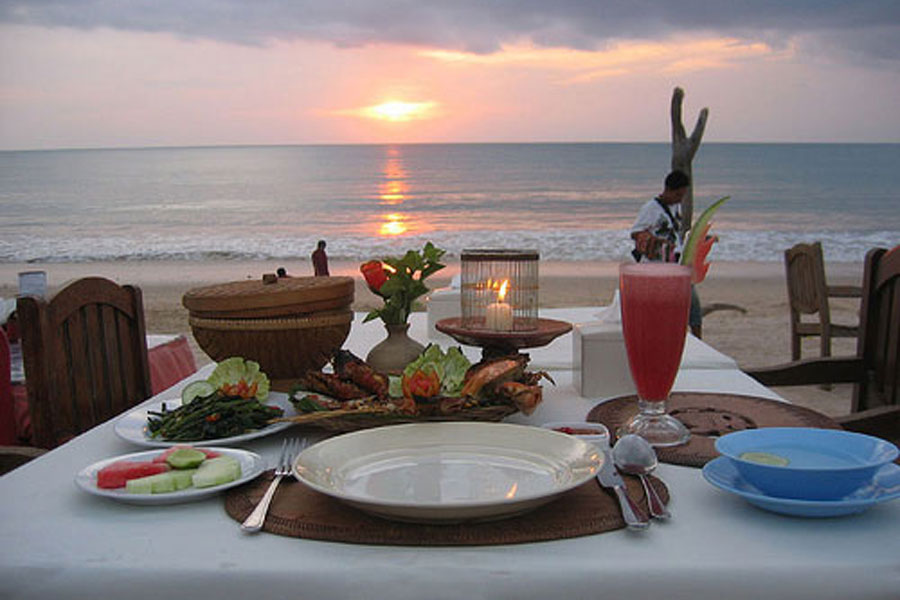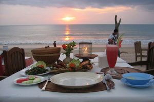 A South Bali tour typically includes visits to famous attractions like the cliffside Uluwatu Temple, beaches such as Melasti where we can watch kecak fire dance as well, Nusa Dua for water activities and Jimbaran for dinner with special sea food menu